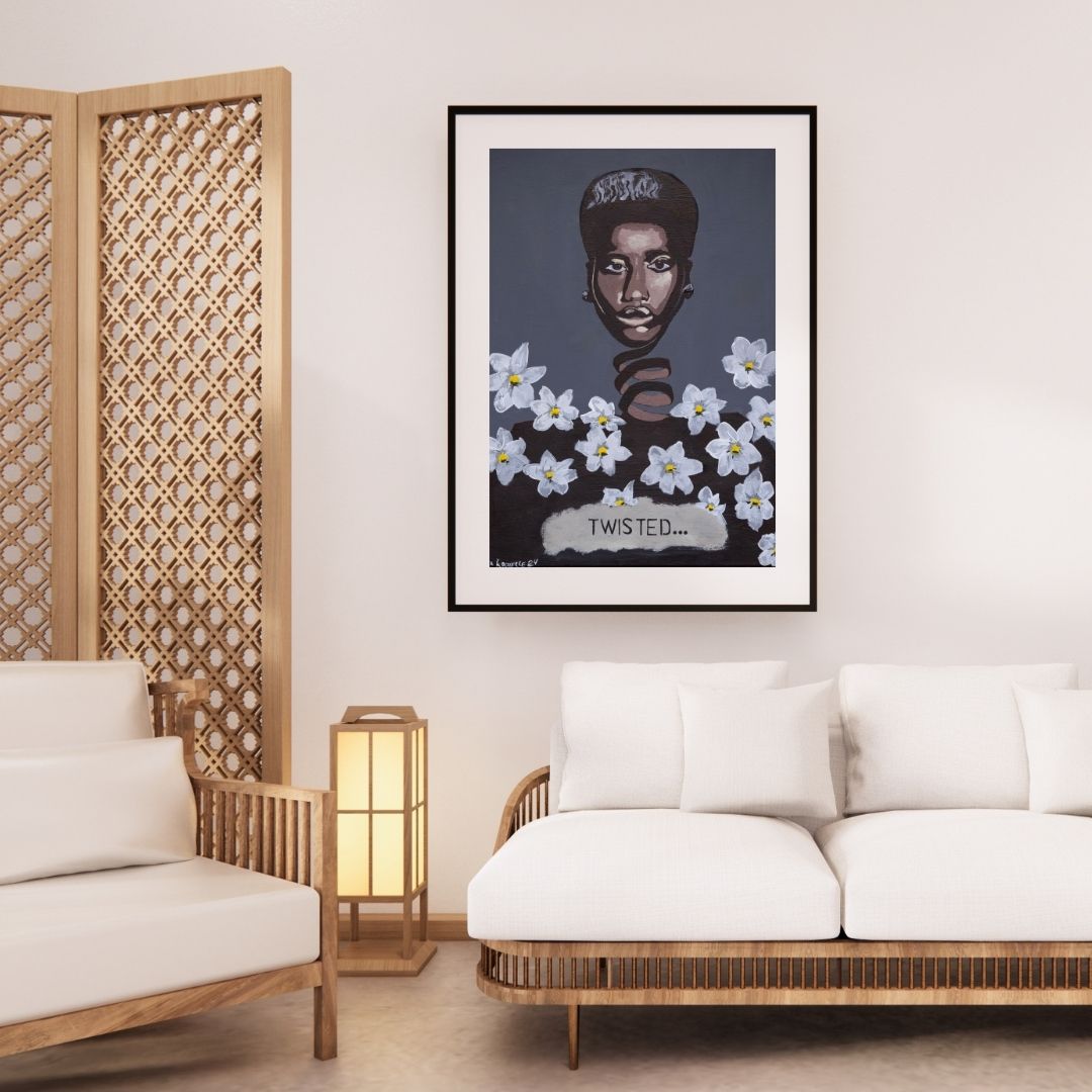 This bold piece lives up to its name with dynamic, twisting strokes that coil and unravel across the canvas. Deep contrasts of dark and light tones give the impression of energy caught mid-motion, a dance between chaos and control. The layered textures invite the viewer to lean closer, discovering new shapes and movement within every curve.